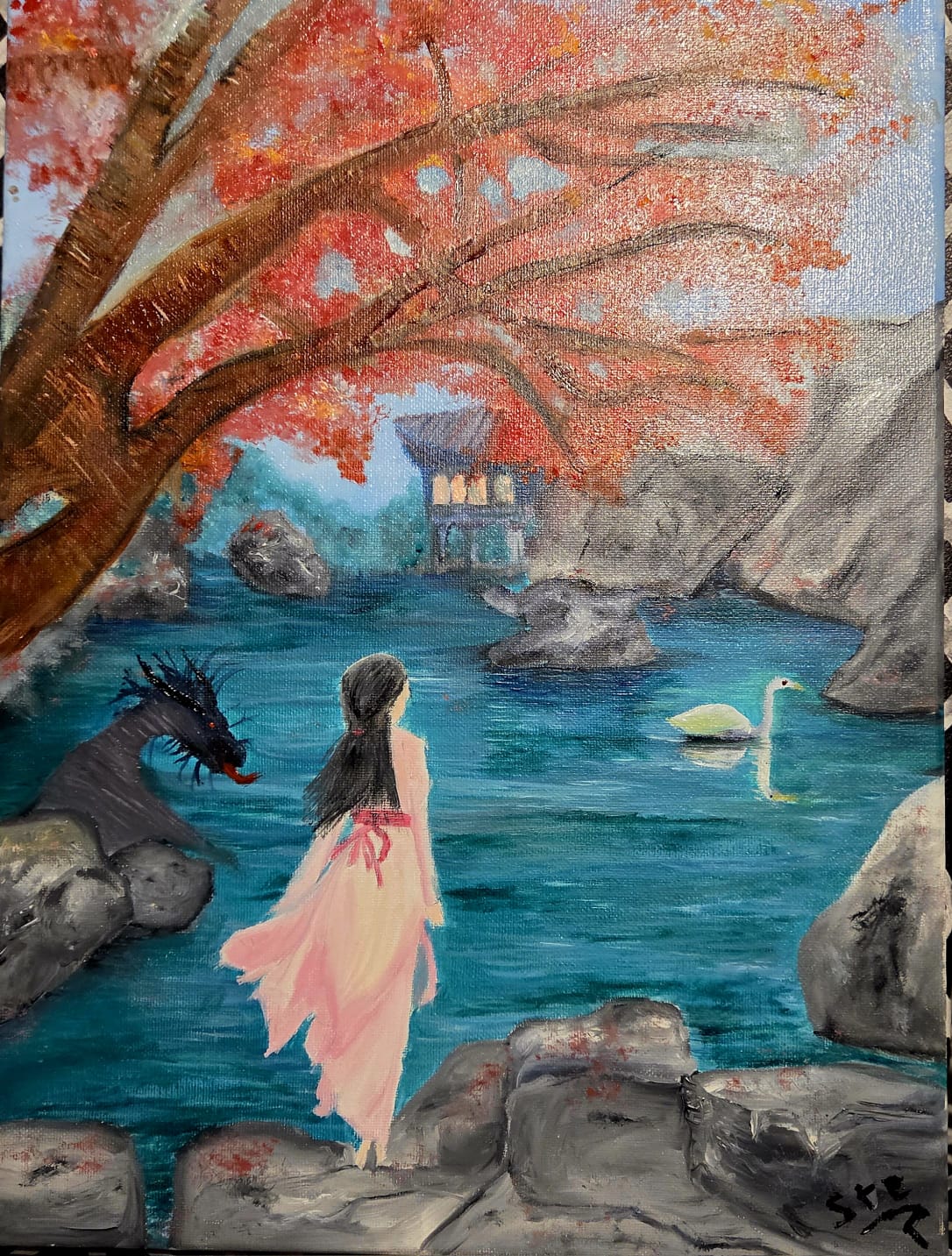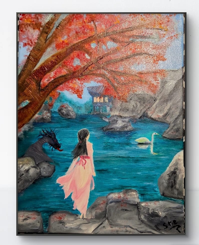 Cuadro Arte Oriental Original, Óleo en Bastidor Tela 40×30